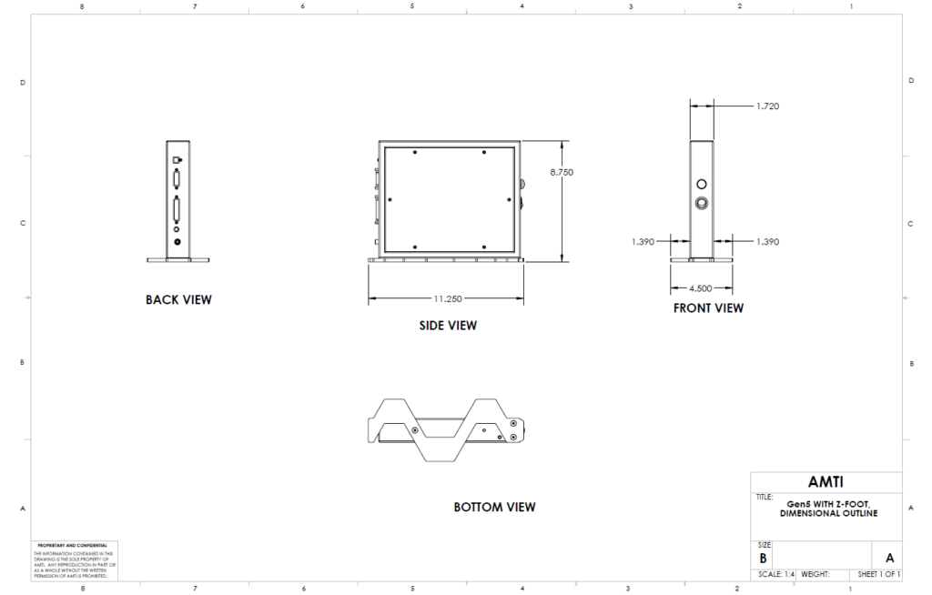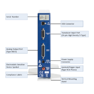 AMTI’s GEN-5 amplifier provides both a digital (USB) output for direct connection to your PC, and a 6-channel analog output if a third-party data acquisition system is preferred. To facilitate setup, the amplifier automatically reads and uploads complete transducer profile information stored onboard all AMTI smart force platforms and force sensors, including bridge resistance, transducer capacity, and the calibration matrix.