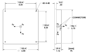 The HE6x6 features a one piece sensing element that provides extremely high overload protection on all axes. Typically greater than 100x capacity. Top & bottom mounting holes are provided in the force platform, but are not needed for many applications.
