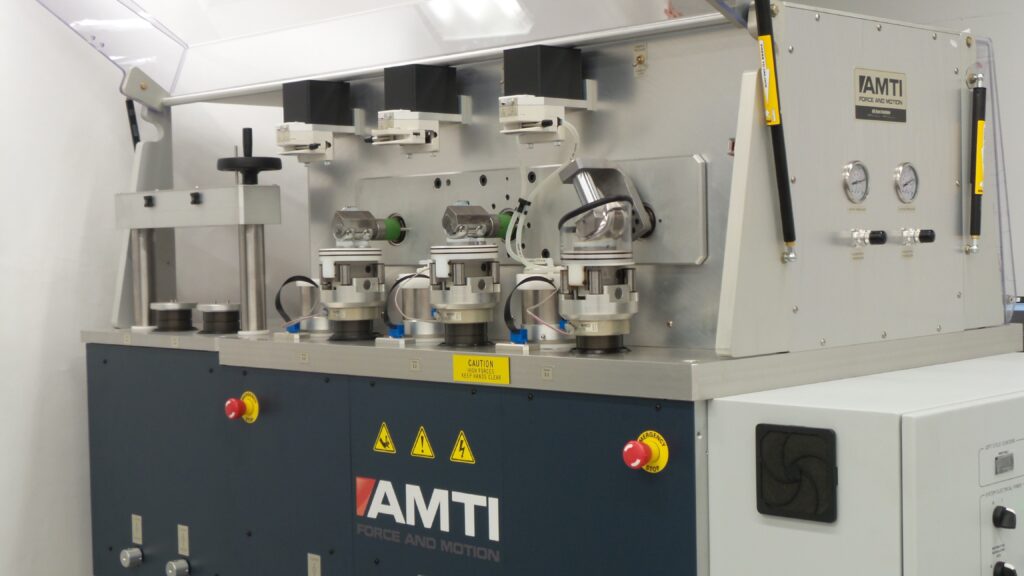 AMTI simulators are built to replicate the motions associated with activities of daily living (ADLs), such as running, deep knee bends, and even swinging a golf club. Up to twelve different physiological motions can be sequenced to define a particular lifestyle.