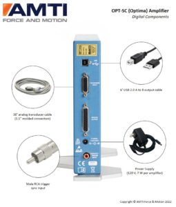 The Optima amplifier (OPTIMA-SC) is an essential component of AMTI’s patented Optima force measurement systems. This signal conditioner works exclusively with Optima-HPS and Optima-BMS force plates and precision calibration files to provide levels of accuracy never before seen in force platform systems.